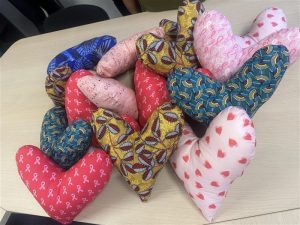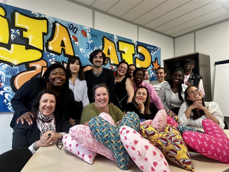 Dans la continuité de l’initiative portée autrefois par Line, les équipes du CFA numiA ont également mis leur créativité et leur savoir-faire au service d’un atelier solidaire : la confection de coussins en forme de cœur destinés aux femmes opérées du sein.